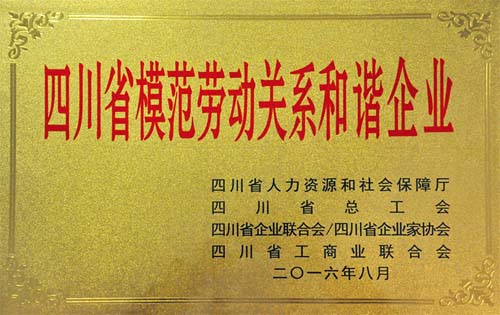 由四川省人力資源和社會保障廳、四川省總工會、四川省企業(yè)家聯(lián)合會/企業(yè)家協(xié)會、四川省工商業(yè)聯(lián)合會四部門以川人社(2016)32號文,授予我司等為省級勞動關(guān)系和諧企業(yè)稱號。