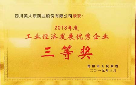 據(jù)(德辦函(2019)10號)《德陽市人民政府辦室 關(guān)于公布2018年度工業(yè)經(jīng)濟發(fā)展優(yōu)秀企業(yè)及優(yōu)秀企業(yè)經(jīng)營者名單的通報》,我司被評為“2018年度工業(yè)經(jīng)濟發(fā)展優(yōu)秀企業(yè)”;我司董事長兼總經(jīng)理張孝齊同志被評為“2018年度工業(yè)經(jīng)濟發(fā)展優(yōu)秀企業(yè)經(jīng)營者”。