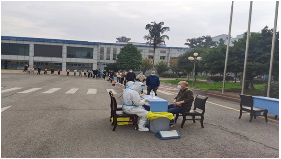 11月21日正式閉環(huán)生產(chǎn),早上7:10食堂準時供應(yīng)早餐,提供稀飯、雞蛋、饅頭、牛奶、蔬菜等,員工隔區(qū)、順向、分時就餐。8點準時到崗開始閉環(huán)生產(chǎn)第一天工作,制劑車間、提取車間均按照閉環(huán)生產(chǎn)安排開足馬力生產(chǎn)。資財部、行政部、質(zhì)量控制部、質(zhì)量保證部、工程設(shè)備部、儲運部、客戶部、安辦各司其職保障生產(chǎn)和員工生活。該天10點什邡市經(jīng)信局領(lǐng)導(dǎo)到公司檢查閉環(huán)生產(chǎn)工作充分肯定我們閉環(huán)管理工作,同時要求公司一定要嚴格做好疫情防控工作,保證安全生產(chǎn)。11點過政府疫情防控部門組織醫(yī)務(wù)人員到公司進行核酸檢測服務(wù),認真服務(wù)企業(yè),充分體現(xiàn)了政府的責任和關(guān)懷。