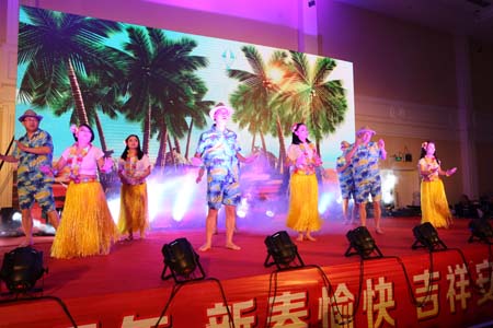 今年的新春團(tuán)拜會(huì)打破傳統(tǒng),模式創(chuàng)新,整個(gè)流程采用LED大屏幕的全新形式,把新春大拜年、工作總結(jié)、頒獎(jiǎng)典禮、文藝表演、幸運(yùn)抽獎(jiǎng)貫穿其中,別開生面,呈現(xiàn)出全新模式的視聽享受。本次團(tuán)拜會(huì)由公司黨、政、工合力籌劃,提前一個(gè)月組織,特別是各部門籌備的文藝節(jié)目,為干部員工們獻(xiàn)上一場精彩紛呈的年會(huì)盛宴。佳樂公司喜慶開場舞蹈,南國風(fēng)情的《草裙舞》、民樂合奏、薩克斯組合、現(xiàn)代拉丁舞等精彩節(jié)目以及激動(dòng)人心的幸運(yùn)大抽獎(jiǎng),讓團(tuán)拜會(huì)氣氛熱烈,高潮不斷。2015年新春團(tuán)拜會(huì),讓人意猶未盡,更是盛況空前,引用時(shí)下最時(shí)尚的用語,那就是“高、大、上”,干部員工紛紛點(diǎn)贊,堪稱美大康版“春晚”。