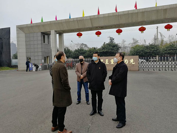 (2月10日,什邡市委組織部部長彭良深入公司一線,檢查公司的防疫情況,并送來慰問品。)