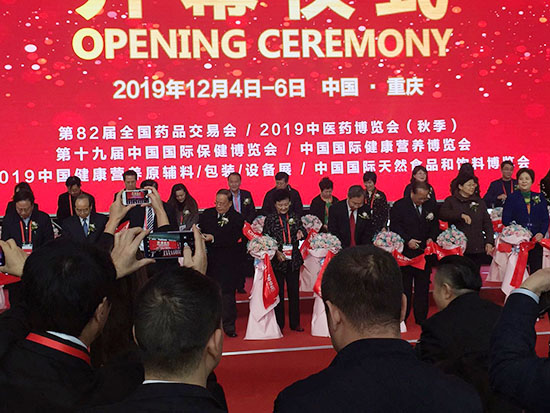 在12月4日上午10:00開幕式上, 伴隨著著歌頌祖國的歌聲、新中國成立70年來醫(yī)藥行業(yè)開創(chuàng)性時(shí)間的回顧視頻,開幕儀式正式開始。參加開幕式的嘉賓依次上臺(tái),澆灌出奮斗這一主題。正如本次展會(huì)的主題“變革重構(gòu)未來”,代表和傳遞著全體醫(yī)藥人為行業(yè)發(fā)展奮斗的決心。四川省醫(yī)藥行業(yè)協(xié)會(huì)副會(huì)長、公司總經(jīng)理張孝齊與國藥集團(tuán)黨委書記、董事長劉敬楨,黨委副書記楊柳,副總經(jīng)理董增賀,重慶市政協(xié)副主席周克勤,國藥勵(lì)展董事總經(jīng)理胡昆坪,中國保健協(xié)會(huì)理事長秦小明,中國化學(xué)制藥工業(yè)協(xié)會(huì)執(zhí)行會(huì)長潘廣成,中國醫(yī)藥商業(yè)協(xié)會(huì)名譽(yù)會(huì)長付明仲,重慶市商務(wù)委副主任宋剛,重慶市醫(yī)保局副局長吳良和、以及國內(nèi)知名企業(yè)的董事長、總經(jīng)理等領(lǐng)導(dǎo)嘉賓出席開幕式。