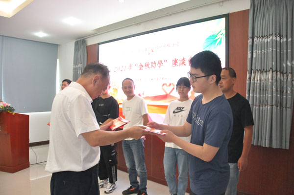 (公司領(lǐng)導為各位學子發(fā)放助學金)