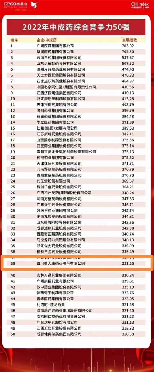 2022年中成藥企業(yè)競(jìng)爭(zhēng)力榜單重磅出爐,我公司榜上有名