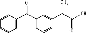 本品主要成份為酮洛芬,化學(xué)名為:α-甲基-3-苯甲?;?苯乙酸。